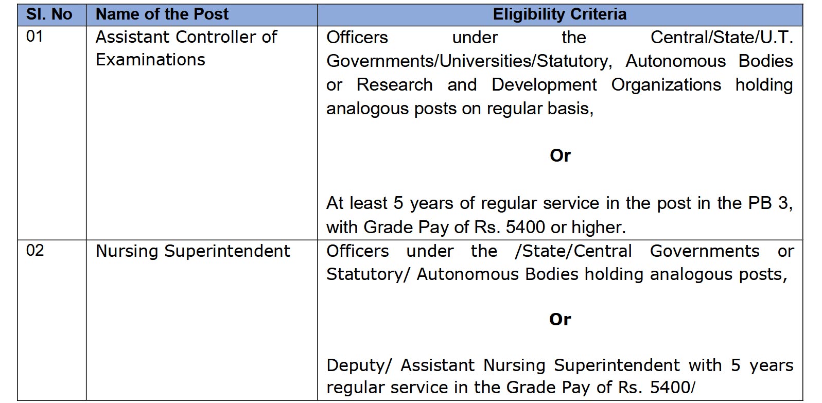 • At least 5 years of regular service in Pay Band-3 with Grade Pay of ₹5400 or higher.
